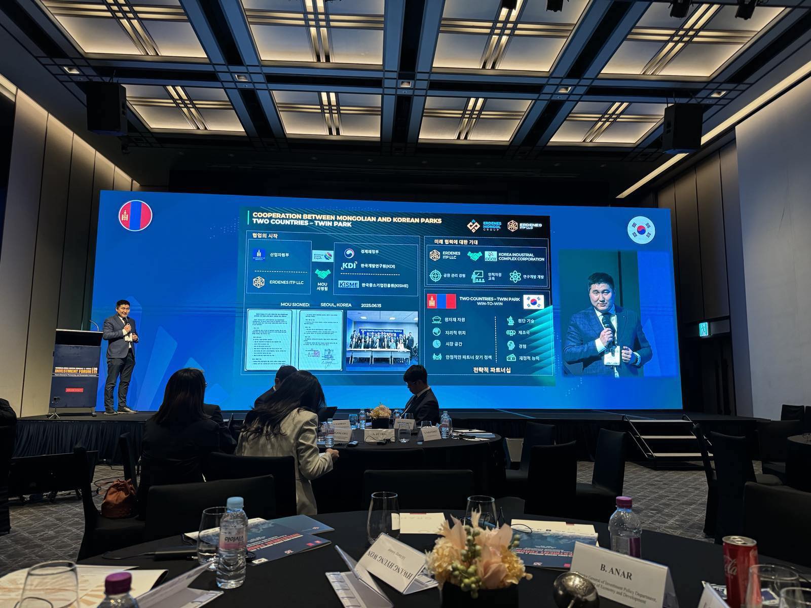 Тус форумд “Эрдэнэс ҮТП” ХХК-ийн Гүйцэтгэх захирал Н.Мөнх-Идэр оролцож Монгол Улсын 6 байршилд байгуулагдаж буй Үйлдвэрлэл, технологийн паркийн төслүүдийн талаарх мэдээллийг танилцууллаа. “Эрдэнэс ҮТП” компани нь ҮТП- уудад эхний ээлжид 10,000 орчим инженер, техникийн мэргэжилтэн шаардлагатай талаарх судалгааг гаргаад байгаа юм.