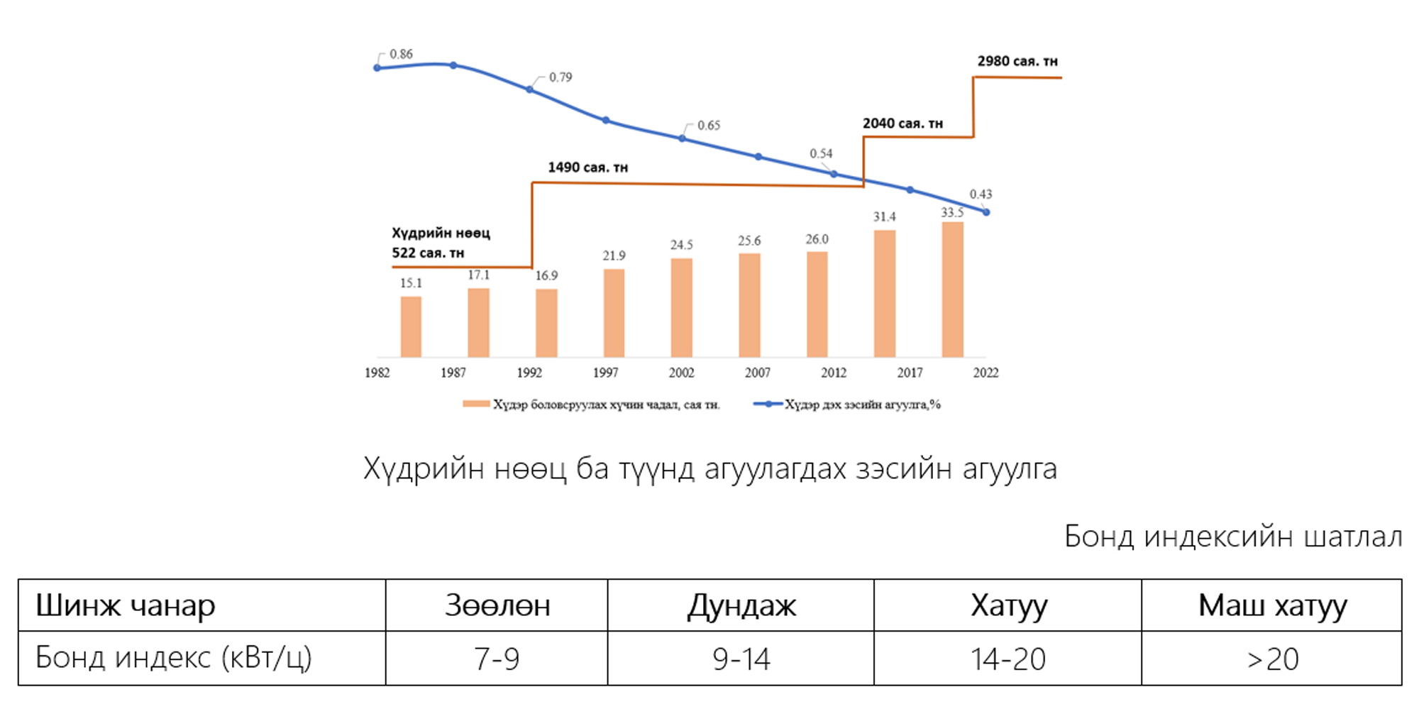 - Нэг тонн хүдэр нунтаглах бутлах хувийн цахилгаан зарцуулалтаар технологийн шинэчлэлийн 4 хувилбараас хамгийн бага буюу 17.27кВт.цаг/тн (бусад хувилбаруудаас 7-32% бага);