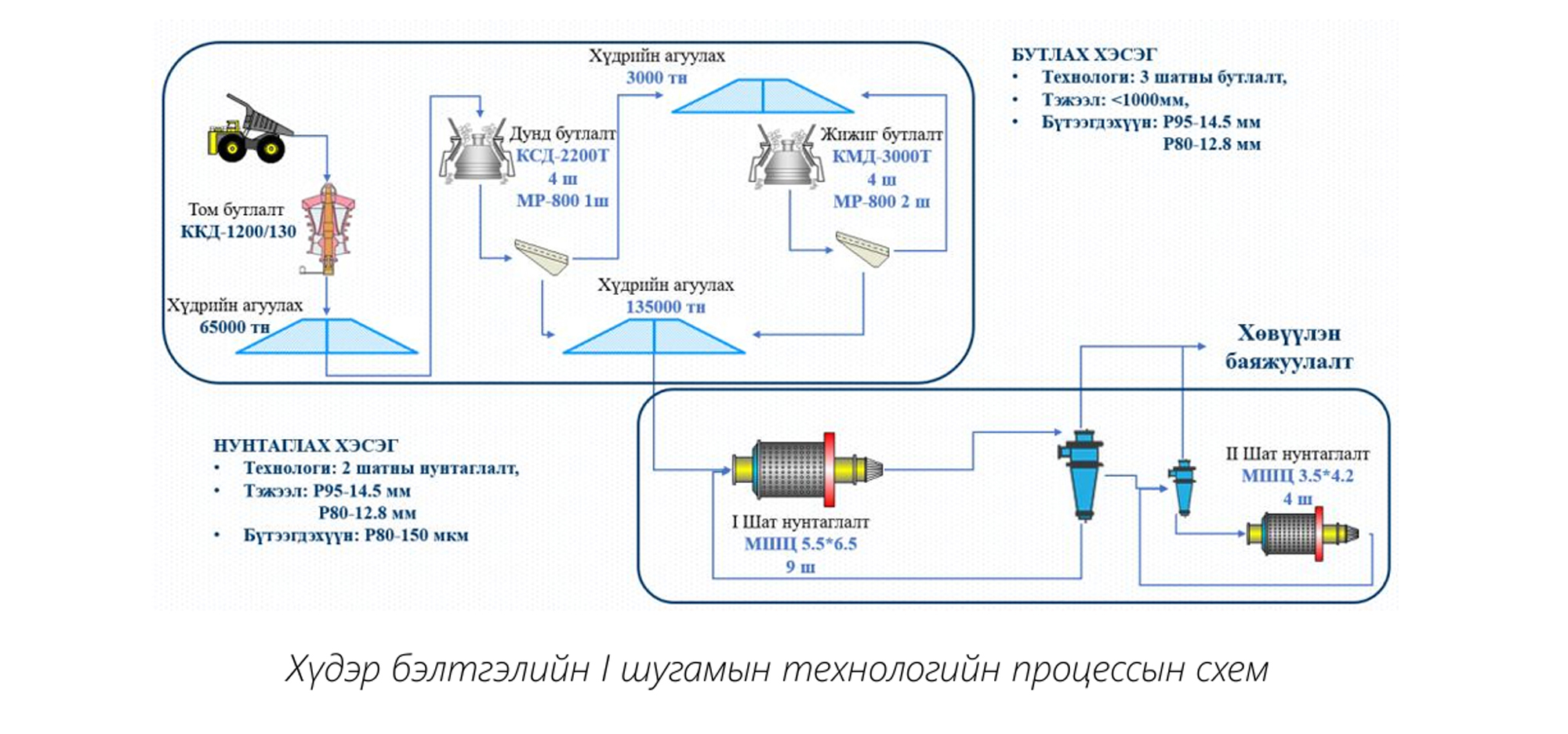 Иймд Баяжуулах үйлдвэрийн хүдэр бэлтгэлийн I шугамыг шинэчлэх төслийн хүрээнд жилд 20.5 сая тн хүдэр боловсруулах суурь нөхцөлтэйгээр технологийн шинэчлэлийн 3 хувилбарыг боловсруулж оновчтой хувилбарыг боловсруулж 4-р шатанд өндөр даралтат булт нунтаглагч нэвтрүүлэх шинэчлэлийн хувилбарыг сонгосон бөгөөд үндэслэлийг хураангуйлбал: